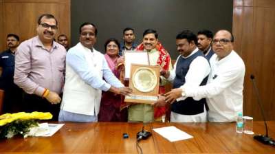 मुख्यमंत्री डॉ. यादव को सौंपी गई स्वच्छता अवार्ड की ट्राफी।