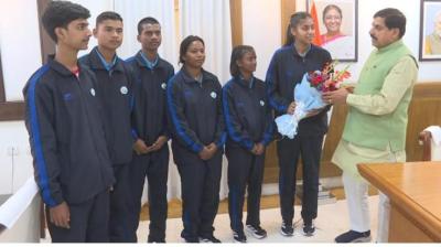 मुख्यमंत्री ने खिलाड़ियों को शुभकामनाएं देकर भेंट की फुटबॉल किट,16वीं एशियन शूटिंग चैम्पियनशिप कजाकिस्तान में पदक विजेता खिलाड़ियों को प्रोत्साहन राशि प्रदान की