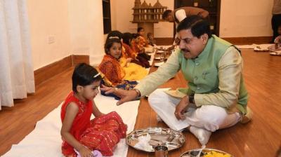 मुख्यमंत्री डॉ. यादव ने कन्याओं को तिलक लगाकर, चुन्नी ओढ़ाकर स्नेह पूर्वक कराया भोज