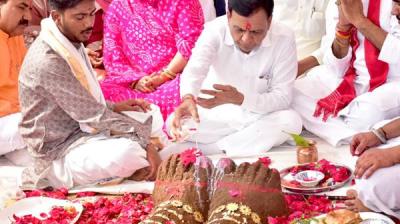 उप मुख्यमंत्री देवड़ा ने लामगरी स्थित कमलमुनि चिन्मयानंद गौशाला में की गोवर्धन पूजा,अन्नकूट में शामिल हुए एवं प्रसादी ग्रहण की।