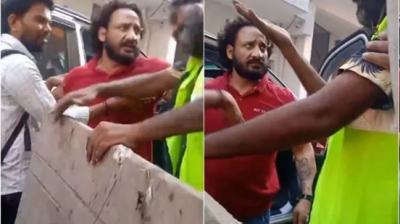 फॉर्च्यूनर सवार की दबंगई! सफाईकर्मी को थप्पड़ जड़ा, गालियां दीं और पिस्तौल दिखाकर धमकाया, देखिए वायरल वीडियो