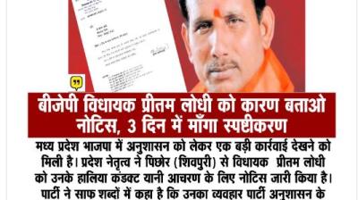 भोपाल, 21 अप्रैल 2026। मध्यप्रदेश आईपीएस एसोसिएशन ने पिछोर विधायक प्रीतम सिंह लोधी द्वारा करैरा एसडीओपी डॉ. आयुष जाखड़ के संबंध में की गई कथित आपत्तिजनक टिप्पणी पर कड़ी प्रतिक्रिया...