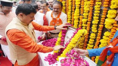 मुख्यमंत्री डॉ. मोहन यादव ने शनिवार को भारत रत्न एवं पूर्व प्रधानमंत्री स्व. अटल बिहारी वाजपेयी की पुण्यतिथि पर शौर्य स्मारक के समीप उनकी आदमकद प्रतिमा पर पुष्पांजलि अर्पित कर...