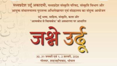 मध्यप्रदेश उर्दू अकादमी द्वारा मध्यप्रदेश संस्कृति परिषद एवं संस्कृति विभाग के सहयोग से जश्ने उर्दू–2026 का भव्य आयोजन 30 जनवरी से 2 फ़रवरी 2026 तक गोलघर, शाहजहाँनाबाद, भोपाल में किया...