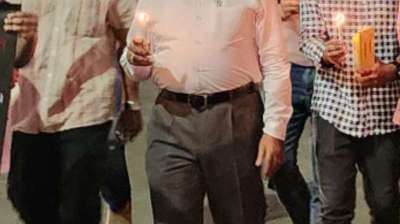भोपाल 24अप्रैल/आतंकी हमले के विरोध में पीपुल्स कॉलेज ऑफ़ मेडिकल के डीन डॉ गौर के नेतृत्व में कैंडल मार्च