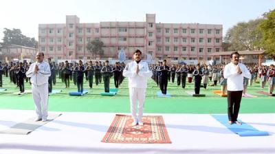 भोपाल 12जनवरी/मंत्री सिंह, राव रुक्मणीदेवी पब्लिक स्कूल के सूर्य नमस्कार कार्यक्रम में हुए शामिल