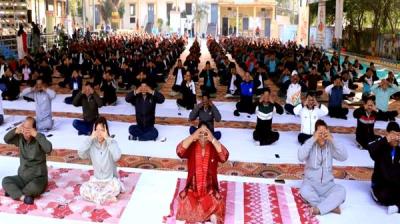 स्वामी विवेकानंद जयंती पर झाबुआ में हुआ जिला स्तरीय सामूहिक सूर्य नमस्कार