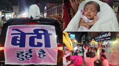 कार पर बैनर लगाकर अस्पताल से घर तक निकाली खुशी की झांकी