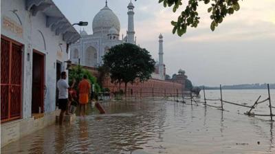 ‘ताजमहल’ बना ‘जलमहल’: यमुना का पानी ऐतिहासिक धरोहर तक पहुंचा, पर्यटक परेशान
