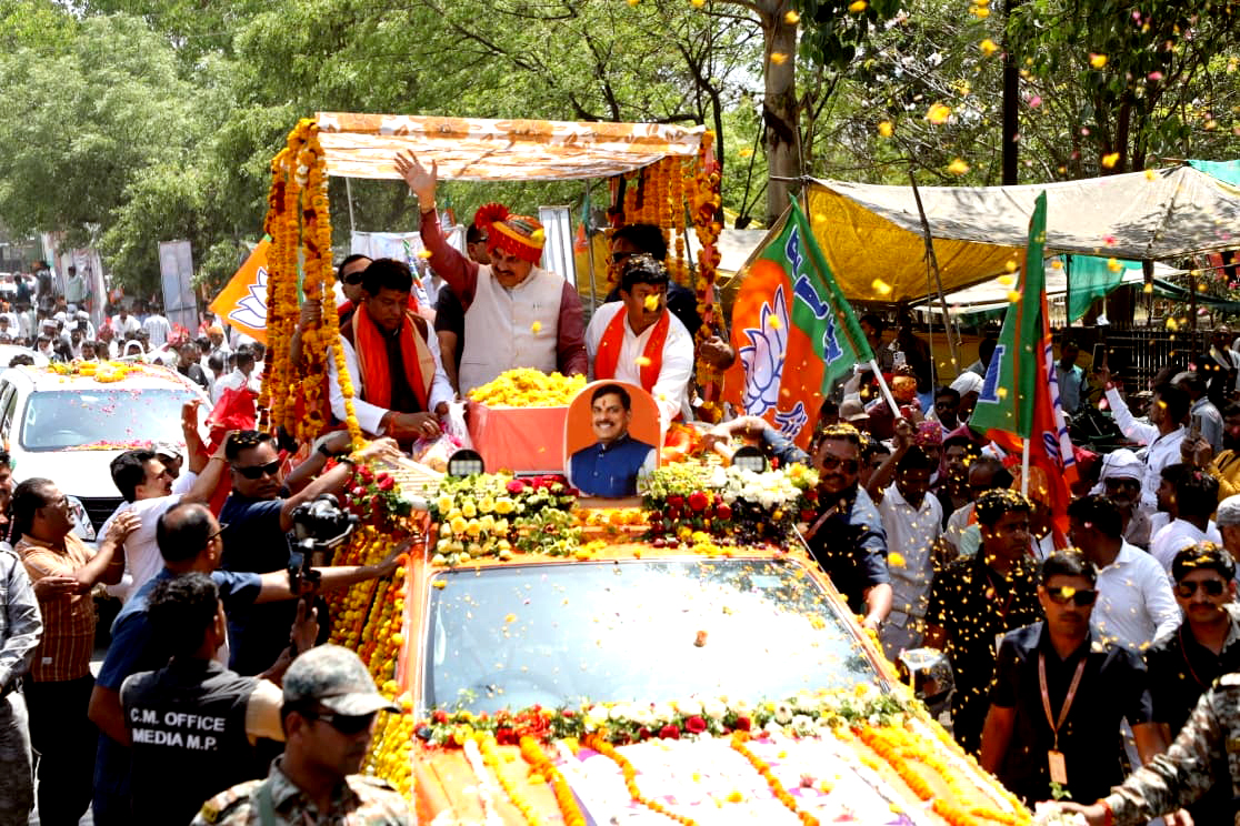 साथ मुख्यमंत्री का भव्य स्वागत किया। मुख्यमंत्री ने भी आत्मीयता से नागरिकों का अभिवादन स्वीकार करते हुए सभी का हृदय से आभार व्यक्त किया। करीब दो किलोमीटर लंबे रोड-शो के दौरान शहर की सड़कों पर जनसैलाब उमड़ पड़ा। जगह-जगह नागरिकों द्वारा लगातार पुष्प वर्षा की गई, फूल मालाओं से मुख्यमंत्री का स्वागत किया गया तथा पगड़ी और अंगवस्त्र भेंट कर सम्मानित किया गया। पूरे मार्ग पर स्वागत के भव्य नजारे देखने को मिले, जहां हर कदम पर लोगों का उत्साह चरम पर नजर आया।