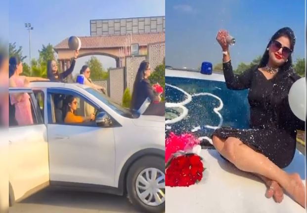 बिलासपुर (छ.ग.) — बलरामपुर जिले के डीएसपी तस्लीम आरिफ की पत्नी द्वारा सरकारी गाड़ी पर जन्मदिन मनाने का मामला तूल पकड़ता जा रहा है। वायरल वीडियो में नीली बत्ती लगी सरकारी एक्सयूवी-700 पर डीएसपी की पत्नी बोनट पर बैठकर केक काटती नजर आ रही हैं, जबकि अन्य महिलाएं चलती गाड़ी के दरवाजों और सनरूफ से बाहर लटकती दिखीं।