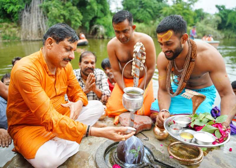 मुख्यमंत्री डॉ. मोहन यादव श्रावण के पवित्र माह के दूसरे दिन उज्जैन में सपत्नीक भगवान श्रीमहाकाल के दर्शन कर भस्मारती में शामिल हुए। भस्मारती के बाद उन्होंने सपत्नीक भगवान श्रीमहाकाल का पूजन किया। पुजारी श्री आकाश गुरु द्वारा पूजन संपन्न करवाया गया। मुख्यमंत्री डॉ. यादव ने नरसिंह घाट पर स्नान कर पूजन-अर्चन भी किया।