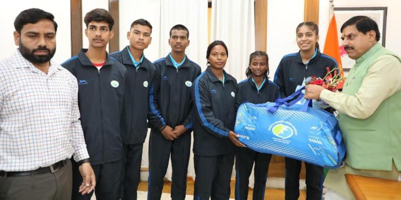 मुख्यमंत्री डॉ. यादव ने सभी खिलाड़ियों को बधाई देकर उनके उज्ज्वल भविष्य की शुभकामनाएं दीं। उन्होंने कहा कि यह देश और प्रदेश के लिए कुछ कर दिखाने का मौका है। इस स्वर्णिम अवसर का भरपूर लाभ उठाएं। मुख्यमंत्री ने सभी खिलाड़ियों को फुटबॉल किट भेंट की। उल्लेखनीय है कि प्रशिक्षक सुश्री लक्ष्मी सहीस के नेतृत्व में कुमारी सानिया कुण्डे (14 वर्ष), कुमारी सुहानी कोल (15 वर्ष), प्रीतम कुमार (14 वर्ष), वीरेन्द्र बैगा (16 वर्ष) और श्री मनीष घसिया (16 वर्ष) प्रशिक्षण लेने जर्मनी जा रहे हैं।