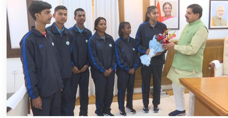 भोपाल 01अक्टूबर/मुख्यमंत्री डॉ. यादव से मिले जर्मनी जाने वाले ग्राम विचारपुर के 5 फुटबॉल खिलाड़ी