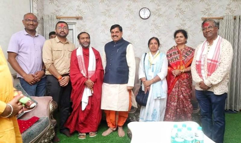 मुख्यमंत्री डॉ. यादव ने कृषि मंत्री के निवास पर पहुंचकर वर-वधू को दिया आशीर्वाद