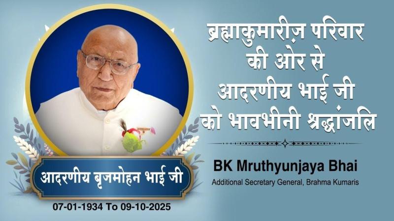 राजयोगी बृजमोहन भाई जी ने 9 अक्टूबर 2025 को प्रातः 10:25 बजे अपनी देह का त्याग किया। उन्होंने अपने जीवन के प्रत्येक क्षण को निष्काम सेवा, पवित्रता और ईश्वरीय योग के माध्यम से मानवता के कल्याण हेतु समर्पित किया। महासचिव, प्रवक्ता, और संस्थान के वैश्विक प्रतिनिधि के रूप में उन्होंने ब्रह्माकुमारीज की शिक्षाओं को अंतरराष्ट्रीय स्तर पर प्रतिष्ठित किया।
