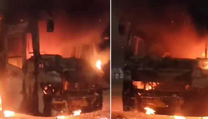 70 यात्रियों से भरी डबल डेकर बस में लगी भीषण आग, दिल्ली से जा रही थी UP