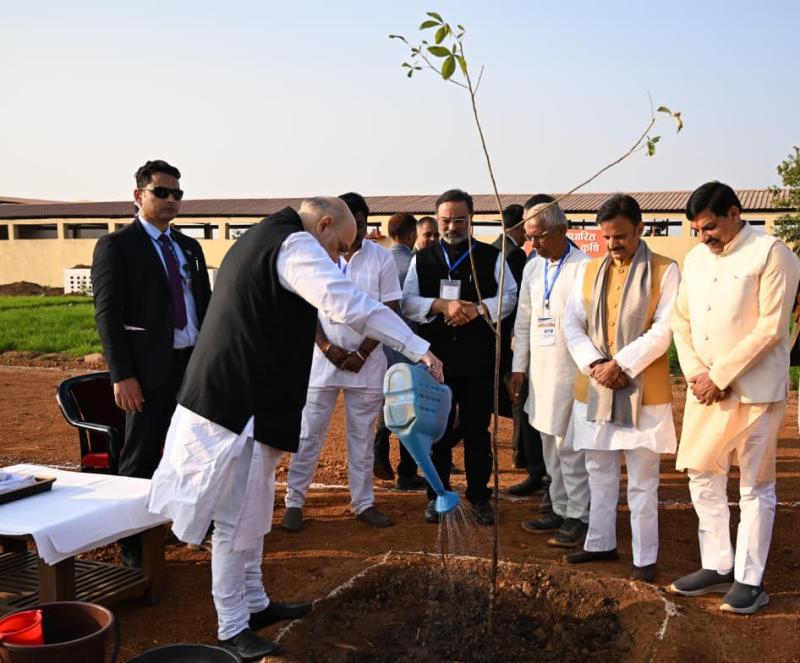 बसामान मामा गोवंश वन विहार (सेमरिया, रीवा) में गृह एवं सहकारिता मंत्री श्री अमित शाह एवं मुख्यमंत्री डॉ. मोहन यादव ने वृक्षारोपण किया।