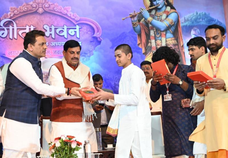 मुख्यमंत्री डॉ. यादव ने कहा कि ऋषि जाबाली की पावन भूमि- जबलपुर को आज भगवान श्रीराम की रामायण के अंतर्राष्ट्रीय आयोजन और भगवान श्रीकृष्ण की पवित्र गीता के नाम पर तैयार हुए गीता भवन की अनुपम सौगात मिल रही है। भारत में चारों दिशाओं में श्रीराम और श्रीकृष्ण ने अपने पराक्रम से लीलाएं कीं। मुख्यमंत्री डॉ. यादव ने कई योजनाओं के हितग्राहियों को हितलाभ एवं 5 विद्यार्थियों को भगवत गीता ग्रंथ का वितरण भी किया। इन विकास कार्यों में रानी दुर्गावती विश्वविद्यालय में जीर्णोद्धार कार्य और सड़क विकास के कार्य शामिल हैं।