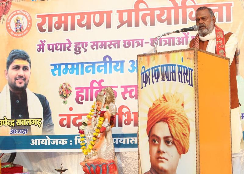मध्य प्रदेश शासन के सामाजिक न्याय एवं दिव्यांगजन सशक्तिकरण, उद्यानिकी तथा खाद्य प्रसंस्करण मंत्री नारायण सिंह कुशवाह ने ग्वालियर दक्षिण विधानसभा क्षेत्र के कम्पू स्थित जवाहर कॉलोनी में स्वामी विवेकानंद पुस्तकालय में आयोजित श्रीरामायण प्रतियोगिता के पुरस्कार वितरण समारोह में सहभागिता की। इस प्रतियोगिता का आयोजन “फिर एक प्रयास संस्था”, ग्वालियर द्वारा किया गया था, जिसका उद्देश्य विद्यार्थियों में नैतिक मूल्यों, संस्कारों एवं भारतीय संस्कृति के प्रति जागरूकता बढ़ाना रहा।