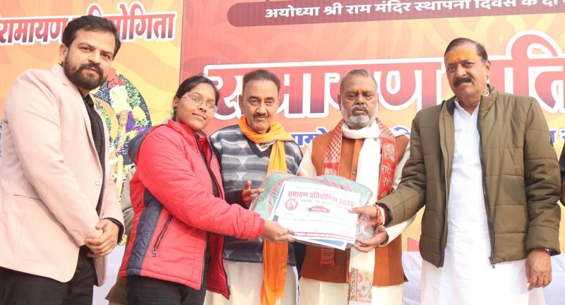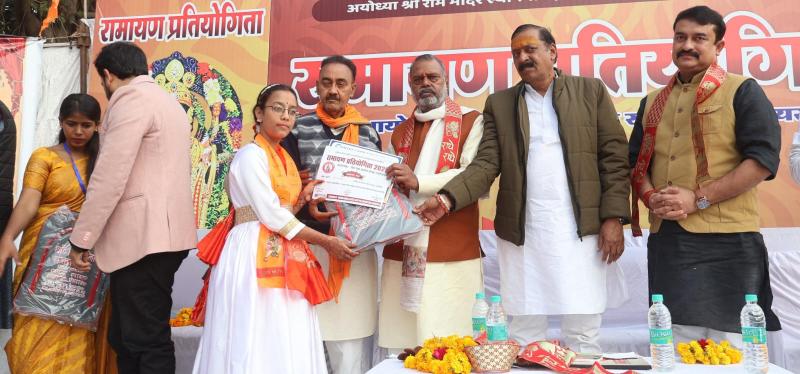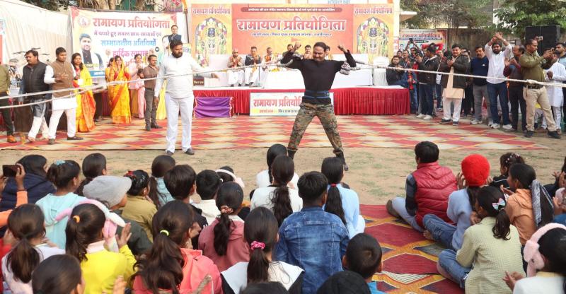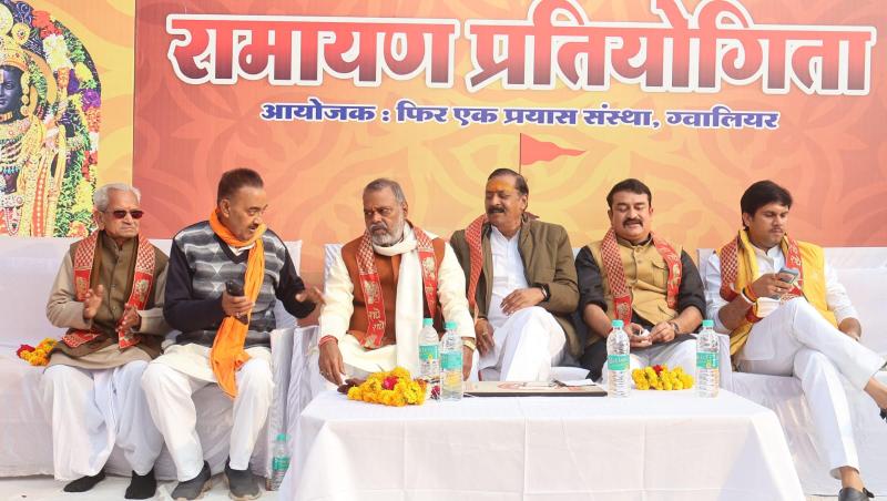 ग्वालियर में श्रीरामायण प्रतियोगिता के पुरस्कार वितरण समारोह में मंत्री ने विद्यार्थियों को दिया प्रेरक संदेश।