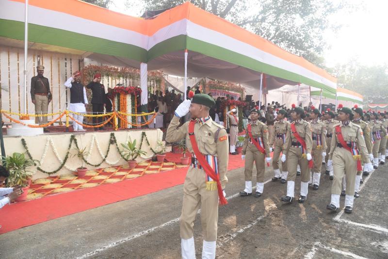 भोपाल26जनवरी/मंत्री दिलीप जायसवाल ने मंडला में ध्वज फहराया और परेड की ली सलामी