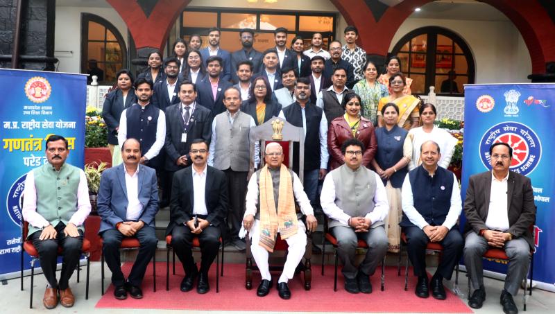 गणतंत्र दिवस 2026 परेड के सहभागी राष्ट्रीय सेवा योजना के स्वयं सेवक लोक भवन में हुए सम्मानित,राज्यपाल मंगुभाई पटेल को अपर मुख्य सचिव उच्च शिक्षा श्री अनुपम राजन ने राष्ट्रीय सेवा योजना के स्वयं सेवकों से चर्चा कार्यक्रम में स्मृति चिन्ह भेंट किया,राज्यपाल मंगुभाई पटेल के समक्ष म.प्र. राष्ट्रीय सेवा योजना के स्वयं सेवकों ने लोक भवन में आयोजित कार्यक्रम में मुधर गीतों की प्रस्तुति दी।