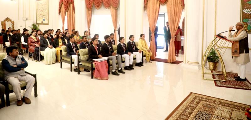 राज्यपाल श्री पटेल को MY भारत राष्ट्रीय सेवा योजना पुरस्कार प्राप्त करने वाले छात्रा आयुषी सिन्हा और सोमित दुबे ने पुरस्कार का अवलोकन कराया। पुरस्कार के संबंध में जानकारी दी। छात्रा रिमी शर्मा और संजय कुमार रजक ने एक माह के शिविर की गतिविधियों के संबंध में छायाचित्रों के माध्यम से जानकारी प्रस्तुत की। छात्रा प्रज्ञा सक्सेना और छात्र विनोद कुमार सेन ने शिविर की गतिविधियों और अनुभवों को साझा किया। राज्यपाल श्री पटेल ने नई दिल्ली में गणतंत्र दिवस 2026 की राष्ट्रीय परेड में शामिल राष्ट्रीय सेवा योजना के स्वयंसेवकों को पुरस्कार और मेडल प्रदान किए। पुरस्कार और पदक प्राप्त करने वालों में आयुषी सिन्हा, सोमित दुबे, प्रज्ञा सक्सेना, विनोद कुमार सेन, आशा वरकड़े, रिमी शर्मा, अंतरा चौहान, आदित्य गौर, महेश चौहान और संजय कुमार रजक शामिल थे।