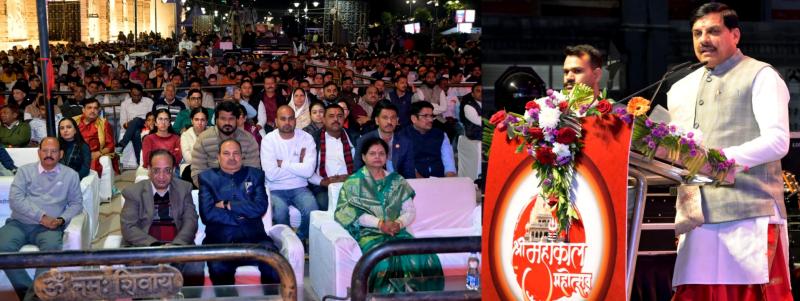 श्रीमहाकाल महोत्सव श्रद्धालुओं को आध्यात्म, धर्म और प्रदेश की समृद्ध सांस्कृतिक परम्परा से जोड़ने का माध्यम,उज्जैन में हुआ श्री महाकाल महोत्सव का भव्य आयोजन शुरू,मुख्यमंत्री ने श्री महाकालेश्वर मंदिर की नवीन आधिकारिक वेबसाइट पोर्टल का किया शुभारंभ,600 करोड़ की लागत से निर्मित होने वाले श्री महाकालेश्वर भक्त निवास के दान एवं सीआरएस पोर्टल का शुभारंभ,पार्श्व गायक श्री शंकर महादेवन के भजनों की सुमधुर प्रस्तुति ने श्रद्धालुओं का मन मोहा।
