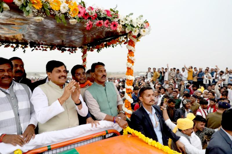 रोड शो में जनता का अभूतपूर्व स्वागत कुलैथ में मुख्यमंत्री डॉ. यादव का रोड शो भव्य और ऐतिहासिक रहा। हेलिपेड से रथ पर सवार होकर जैसे ही वे आगे बढ़े, मार्ग के दोनों ओर खड़े हजारों लोगों ने पुष्पवर्षा कर उनका स्वागत किया। यह जनसमर्थन प्रदेश सरकार की लोकप्रियता को दर्शाता है। प्रधानमंत्री के मार्गदर्शन में विकास की नई दिशा मुख्यमंत्री ने अपने संबोधन में कहा कि नरेन्द्र मोदी के नेतृत्व और मार्गदर्शन में मध्यप्रदेश सरकार निरंतर विकास और जनकल्याण के कार्य कर रही है। उन्होंने कहा कि केंद्र और राज्य सरकार की समन्वित नीतियों से प्रदेश तेजी से प्रगति की ओर अग्रसर है।