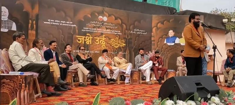 तत्पश्चात प्रख्यात हास्य कलाकार एवं सोशल मीडिया इन्फ़्लुएंसर रहमान ख़ान (मुंबई) ने “गिगल-ए-आज़म” के अंतर्गत एकल नाट्य प्रस्तुति दी, जिसमें उर्दू साहित्य की हास्य-व्यंग्य परंपरा को रोचक एवं समसामयिक अंदाज़ में प्रस्तुत किया गया। दिन के अंतिम सत्र में “उर्दू का फ़िल्मी सफ़र – चलते चलते” शीर्षक से संगीतात्मक नृत्य-नाट्य प्रस्तुति का मंचन हुआ। इस प्रस्तुति में महान अदाकारा मीना कुमारी के जीवन और कृतित्व को संवेदनशीलता के साथ रेखांकित किया गया। इसके लेखक-निर्देशक डॉ. एम. सईद आलम (दिल्ली) रहे। अभिनय में तरन्नुम अहमद, कथक में आस्था गुप्ता, संगीत एवं स्वर में फ़र्रुख़ बेग, वाद्य पर लईक़ अहमद एवं प्रीतम बाबू ने प्रभावशाली प्रस्तुति दी। परिकल्पना रेहान ख़ान की रही तथा संचालन रुशदा जमील ने किया। इसके अतिरिक्त, छतनारा, भोपाल के सहयोग से आयोजित “कारवाँ लिट्रेरी ओपन माइक” में बड़ी संख्या में युवाओं ने कविता, कहानी और अन्य कलात्मक विधाओं में अपनी प्रतिभा का प्रदर्शन किया। इस प्रकार जश्ने उर्दू–2026 का तीसरा दिन उर्दू भाषा, साहित्य और संस्कृति की बहुरंगी अभिव्यक्तियों के साथ श्रोताओं के लिए एक अविस्मरणीय अनुभव बन गया।