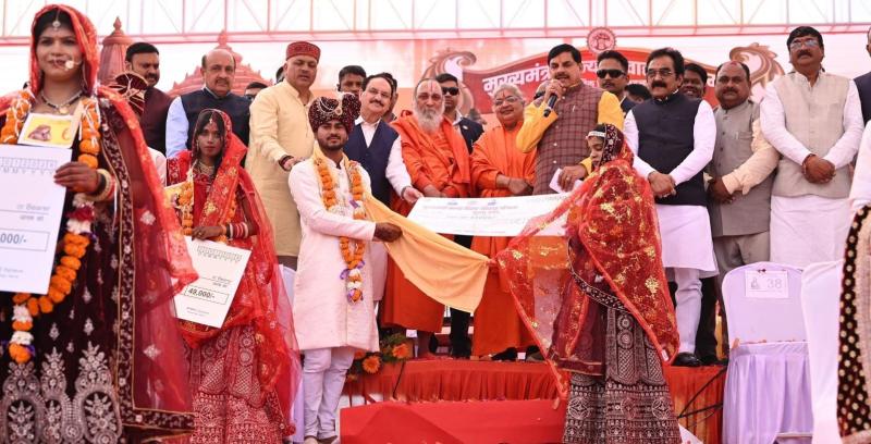 मुख्यमंत्री डॉ. मोहन यादव ने बसंत पंचमी पर हिन्दू और मुस्लिम समुदाय के 121 जोड़ों के सामूहिक विवाह को सामाजिक एकता की मिसाल निरूपित करते हुए नवदम्पत्तियों को भावी जीवन के लिये शुभकामनाएँ दीं। उन्होंने नवदम्पत्तियों को मुख्यमंत्री कन्यादान विवाह/निकाह योजना में 51-51 हजार रुपये की राशि के चेक भी भेंट किये। इस अवसर पर केंद्रीय स्वास्थ्य मंत्री जगत प्रकाश नड्डा ने भी नवदम्पत्तियों को आशीर्वाद दिया।