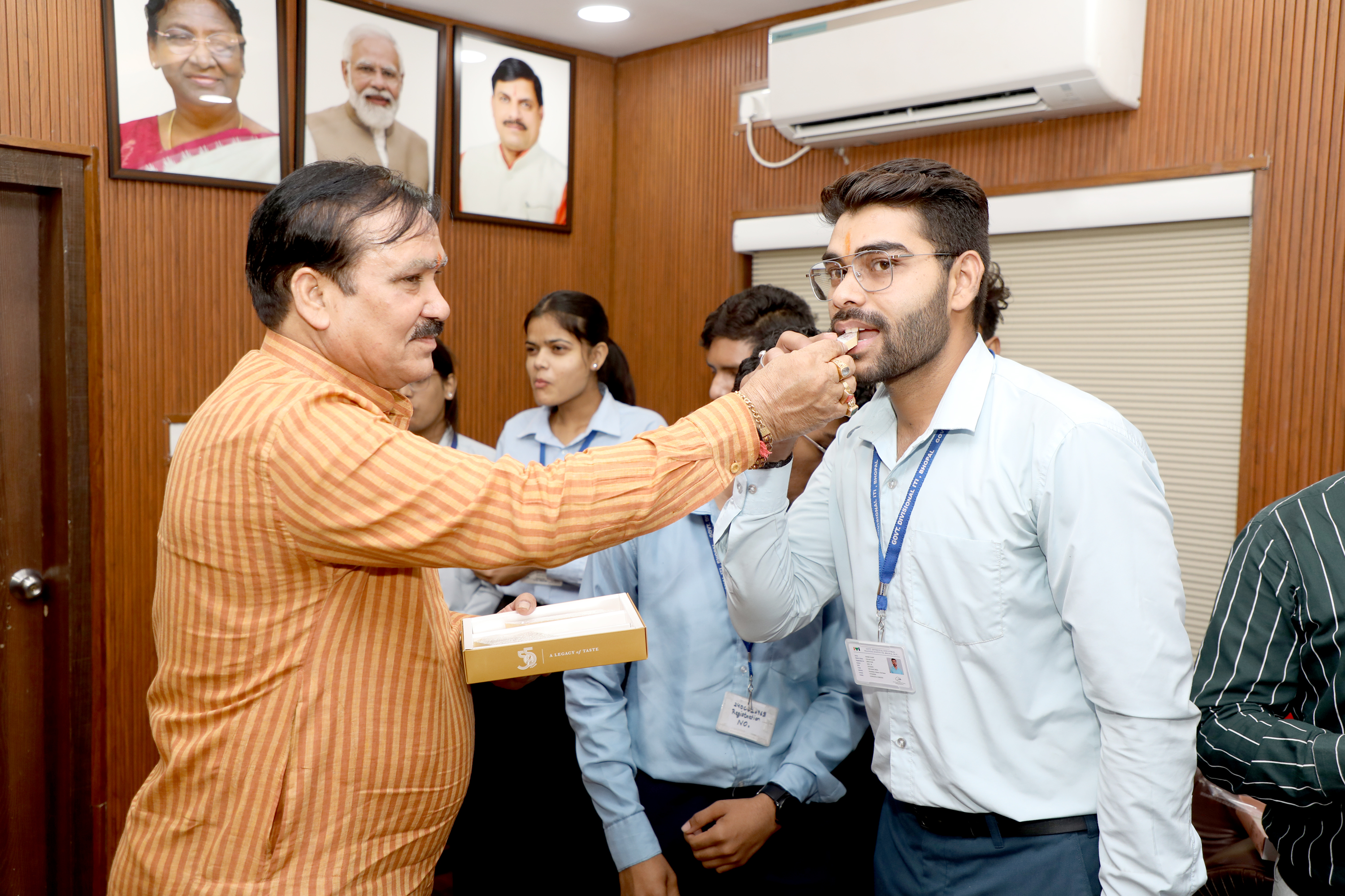 कार्यक्रम के व्यापक प्रचार-प्रसार के लिए डिजिटल माध्यमों के उपयोग को बढ़ाते हुए पोस्टर, फिल्म और अन्य डिजिटल कंटेंट के जरिए अधिक से अधिक युवाओं तक पहुंच बनाने के निर्देश दिए गए। साथ ही, कौशल विकास को स्कूल शिक्षा से जोड़ने की दिशा में भी कार्य करने की बात कही गई। मंत्री श्री टेटवाल ने कहा कि उत्कृष्ट प्रदर्शन करने वाले विद्यार्थियों को प्रोत्साहित करने के लिए उन्हें मुख्यमंत्री से भेंट का अवसर दिया जाएगा, जिससे युवाओं में प्रेरणा और प्रतिस्पर्धा की भावना विकसित होगी। मंत्री श्री टेटवाल ने कार्यक्रम में पहुंचे विद्यार्थियों का मिठाई खिलाकर स्वागत किया और उन्हें आईटीआई से जुड़कर अपने भविष्य को सशक्त बनाने के लिए प्रेरित किया।
