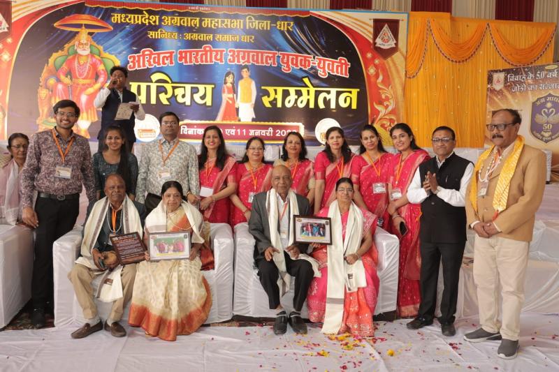 स्वागत भाषण संयोजक गोपी किशन अग्रवाल, संचालन समन्वयक आशीष गोयल, अतिथि परिचय महाप्रबंधक पराग अग्रवाल और आभार प्रदर्शन महामंत्री जितेंद्र अग्रवाल ने किया। समस्त अतिथियों का स्वागत दुपट्टे,माला और स्मृति चिन्ह से किया गया। अग्रमाधवी स्वर्णिम युगल सम्मान अंतर्गत 50 वर्ष पूर्ण हुए जोड़ो का हुआ सम्मान अग्रमाधवी स्वर्णिम युगल सम्मान अंतर्गत विवाह के 50 वर्ष पूर्ण हुए जोड़ो का कुटुंब प्रबोधन का बढ़ावा देने हेतु अग्रवाल समाज धार एवं आसपास से विवाह के 50 वर्ष पूर्ण कर चुके 29 वैवाहिक जोड़ो को सपरिवार बेटी जमाई सहित आमंत्रित कर उनका मंच से सम्मान किया गया। परिचय सम्मेलन में पधारे विभिन्न प्रदेशों से युवक युवती प्रत्याशियों द्वारा अपना अपना परिचय समिति द्वारा तैयार किये गए भव्य मंच से दिया गया।सम्मेलन में बड़ी संख्या में युवती प्रत्याशियों की उपस्थित ने सम्मेलन को चार चांद लगा दिये। सम्मेलन में लगे राष्ट्र, धर्म, संस्कृति संरक्षण तथा सामाजिक चेतना एवं जनजागृति के विचारों के फ़्लेक्स ने बाहर से आगंतुकों को बहुत प्रेरीत किया एवं कई लोग उनके आगे सेल्फी ,फ़ोटो लेते नजर आये।