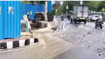 भोपाल में लोक भवन के सामने सड़क धंसने से हड़कंप,...