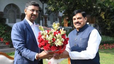 भोपाल 14फरवरी/मुख्यमंत्री से सौजन्य भेंट के बाद मनीष सिंह ने...
