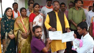 मंत्री लक्ष्मी राजवाड़े ने चरण पादुका का किया वितरण